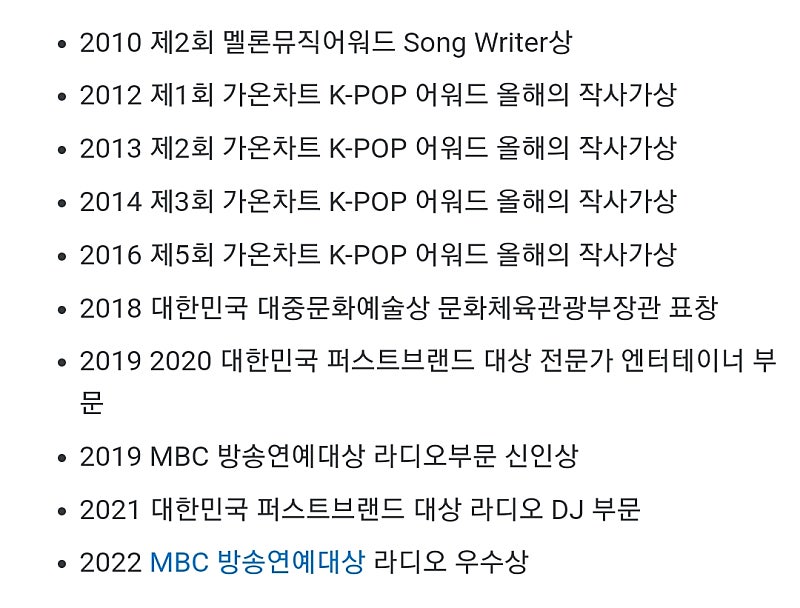 김이나님 수상경력