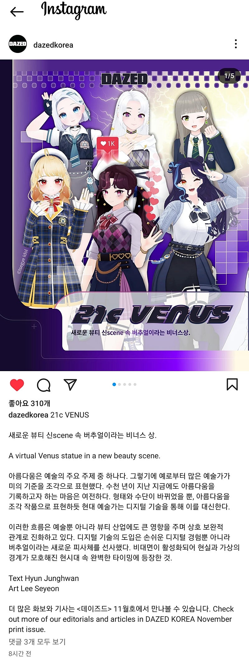 형 이세돌분들 데이즈드코리아 11월 잡지에 나와?