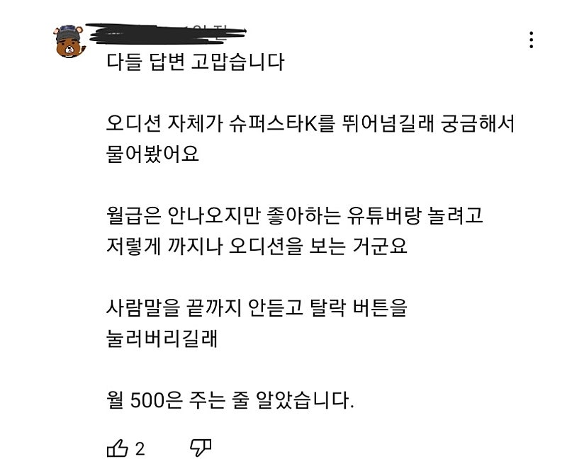 형 고멤오디션 영상보고 의문가지는 댓글 봤어?