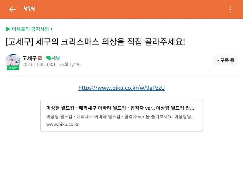 크리스마스 의상 공모전 투표 방식으로 월드컵 만드셨어