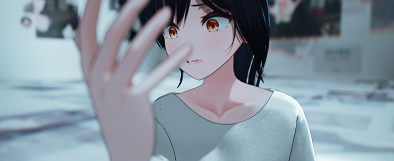 감독님께서 뒷부분에 화이트 노이즈와 함께 한숨 쉬고 입을 벌리자마자 화면이 끊어지는 연출을 요청해주셔서 해당 장면도 새로 캐릭터 애니메이션을 잡고 영상으로 뽑은 다음에 티저의 쿠키영상처럼 활용되었습니다