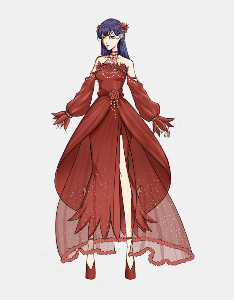 원작의 분위기를 이어가며 릴파님의 오리지널리티를 섞을 수 있도록 고민하였는데 원작 장면에서 꽃을 빼놓을 수 없는 키워드인 만큼 어울리는 꽃말을 가진 꽃을 의상에 넣어 표현하였습니다.