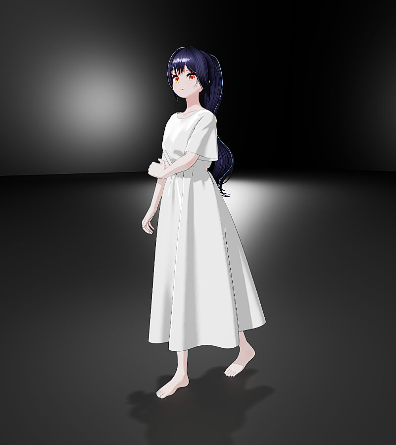 초반에는 헤어핀이나 신발 등의 악세사리가 있었지만 더욱 수수한 모습을 연출하기 위해 다 뺐습니다.
