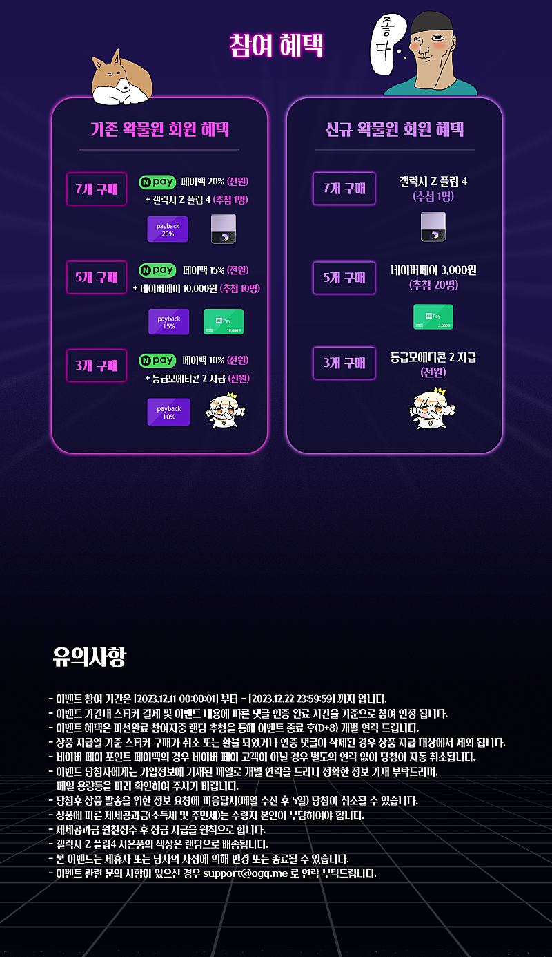 새로운 왁물원 등급티콘과 갤럭시 플립, 네이버 페이 혜택까지 지금바로 확인해보세요 킹애 ~!!~