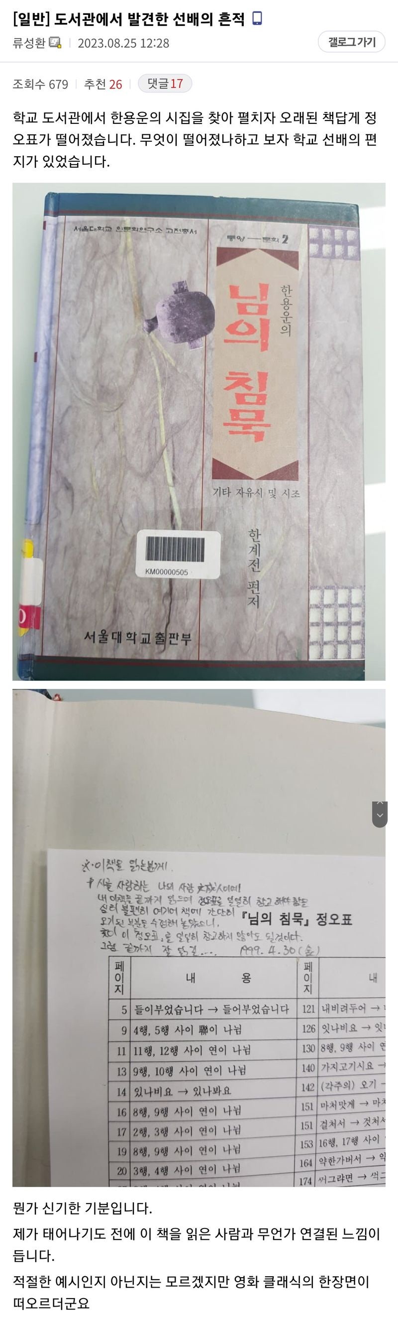 24년만에 도서관에서 발견한 선배의 흔적