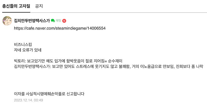 진짜 신고하네 ㅋㅋㅋㅋㅋㅋㅋㅋㅋㅋㅋ