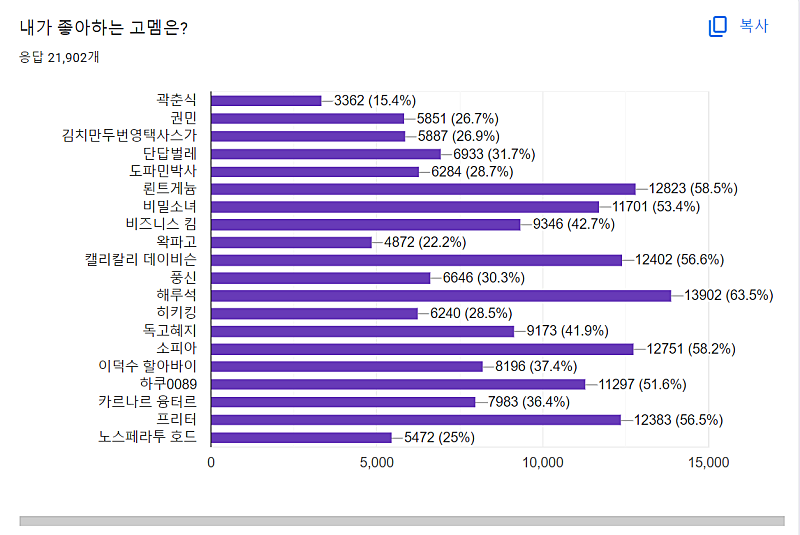 왁타버스 고정멤버 시즌4 인기투표 공개
