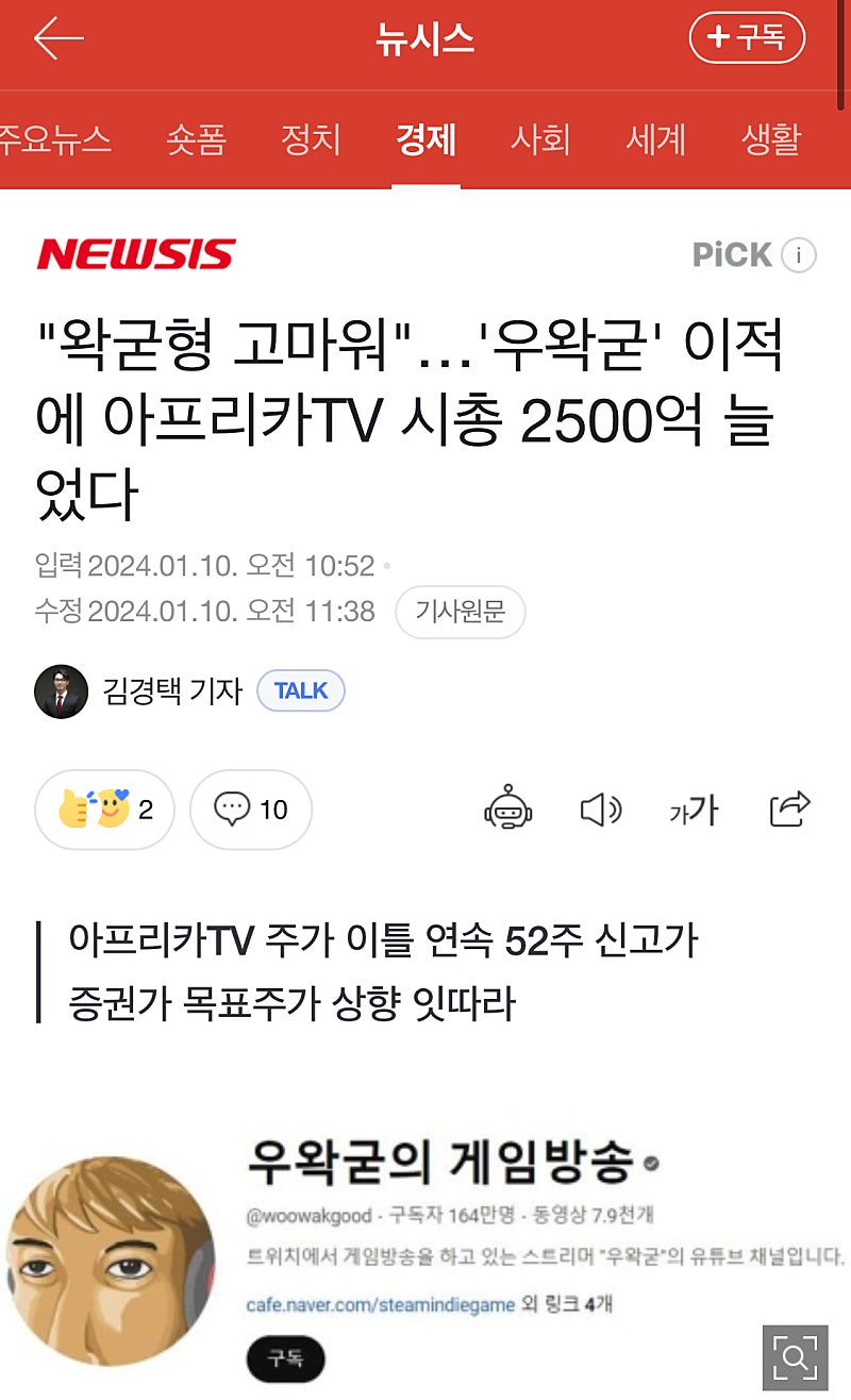 "왁굳형 고마워"…'우왁굳' 이적에 아프리카TV 시총 2500억 늘었다