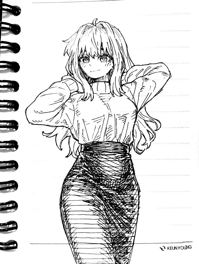 아이네님을 그릴 때는 푹신푹신한 느낌을 살려서 그리려고 하고있어요.