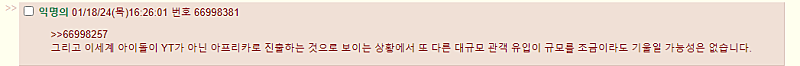 아프리카TV 이적하는거 아시는분도 계시고(근데 대부분 왜 유튜브말고 거길가냐고 이해못하는 반응), 다른 해외 버튜버들처럼 유튜브로 오겠지라며 헛다리짚는 사람들도 있는상황