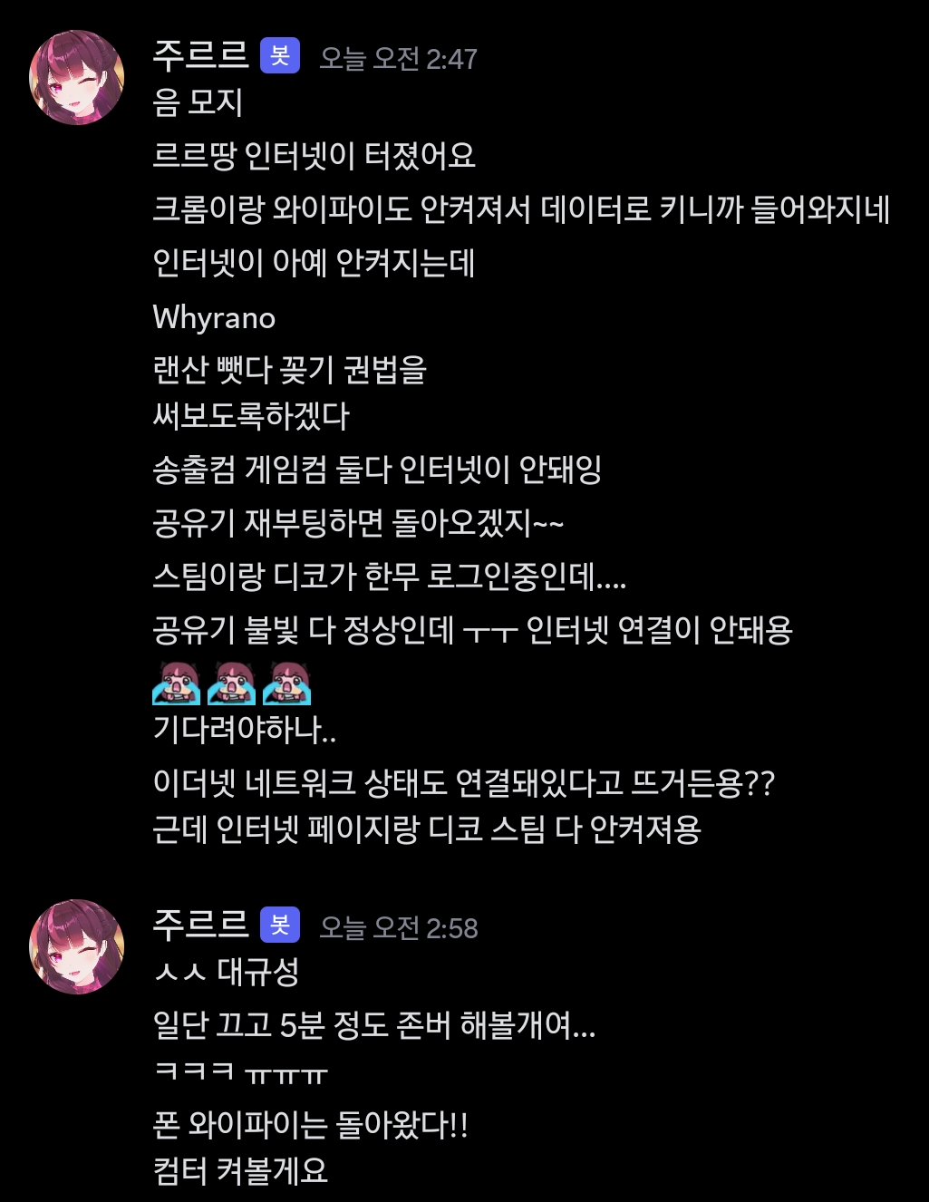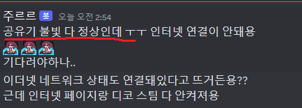 + 오후 7시경 세구님도 디도스 피해를 입으심