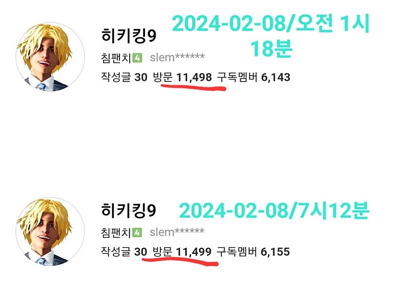 히키킹님 방문수 11498에서 11499로 늘어난 거 켭쳐한 사진이에요