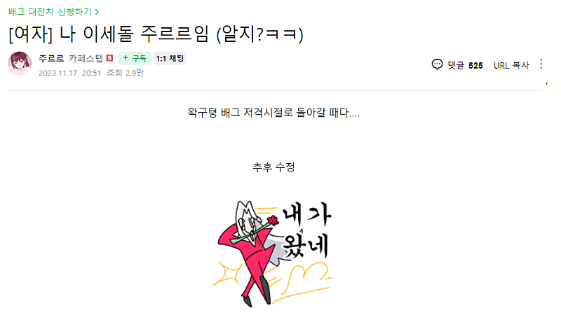으..으잉...???좋은 응원댓글들만 있다가 갑자기 이게 무슨소리지 아 설마 내가 후추수정을 안썼나??잠깐 밖에서 쓰고 나중에 수정한다는게...아이고 이런 괜히 죄송하네..어?
