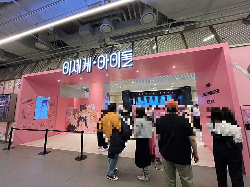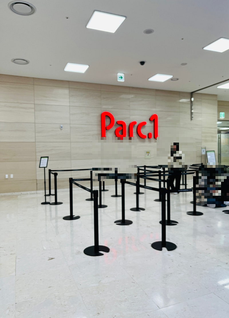 지하에서 대기하다가 열리자마자 스태프분들 안내에 따라 따라가면서 지하 1층 팝업스토어 앞에 도착해서 저기 보이는 줄에서 다시한번 밴드 체크와 네이버 사전예약 체크하고 들어갔어요.