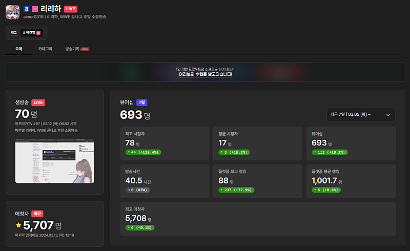 1. 아프리카 방송국 주소: https://bj.afreecatv.com/aimer0319