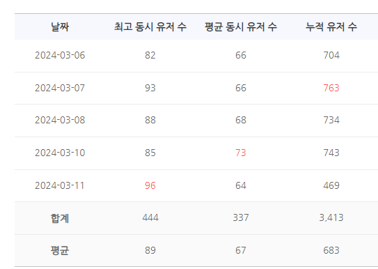 3. 최근 7일간 평청자 수 스크린샷