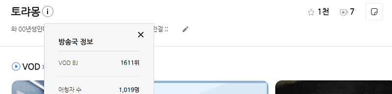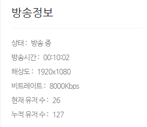 왼쪽 사진은 오늘 방송 유저수구 오른쪽은 최근 방송 평청자수입니다