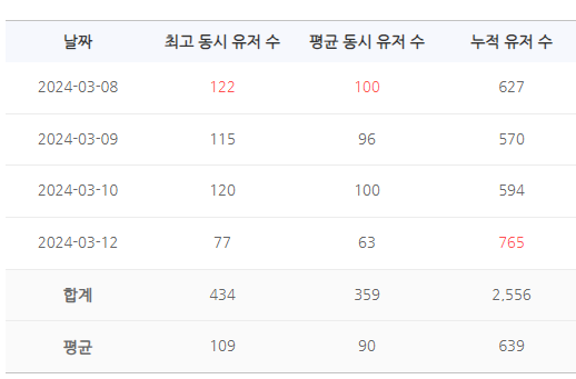 3. 최근 7일간 평청자 수 스크린샷