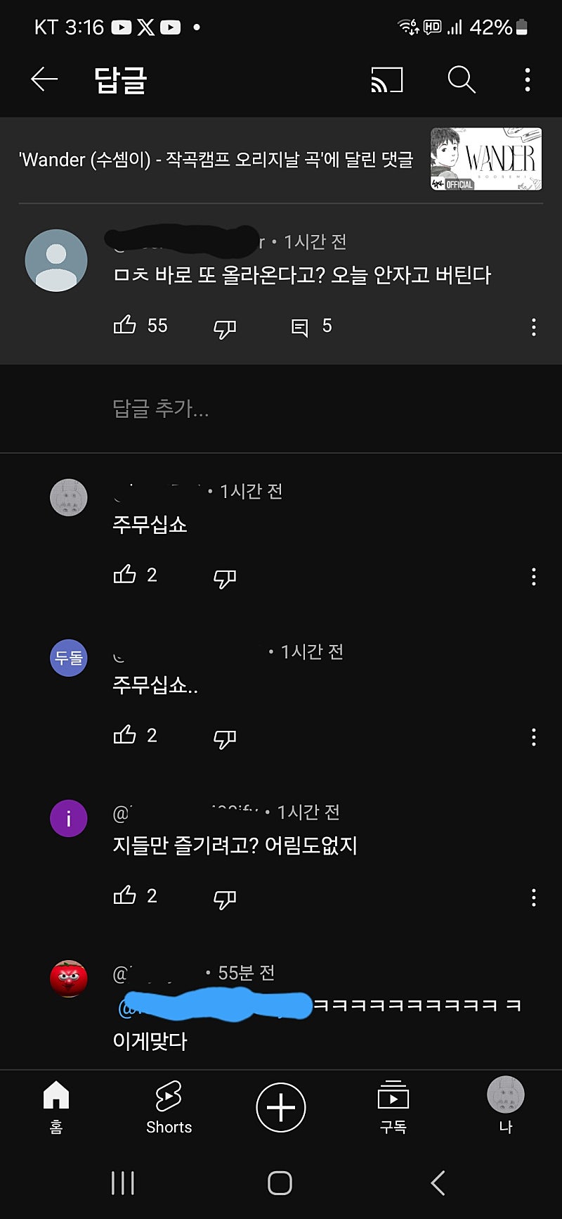 형 작캠 두 곡 밖에 없는거 모르는 유튭팬치 봤어?