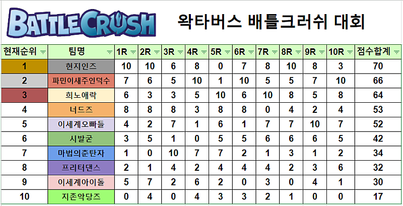 배틀크러쉬 대회 기록 종료(10라운드)