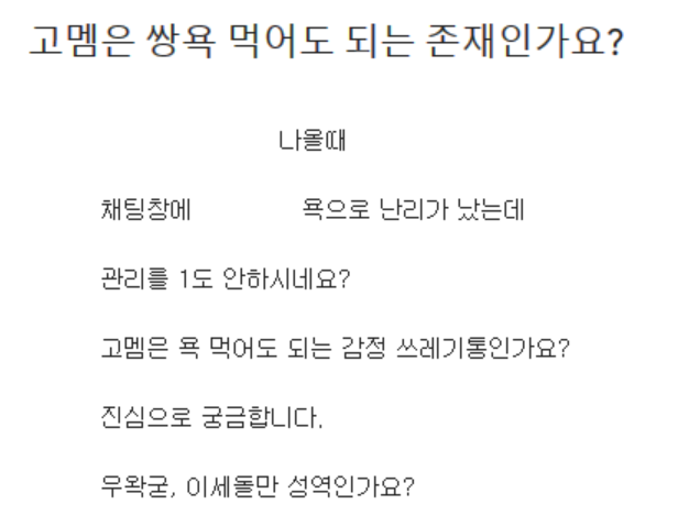 "이세돌 관련 채팅만 관리하고 고멤 관련 채팅은 관리 안하나요?" ※실제 온 메일임
