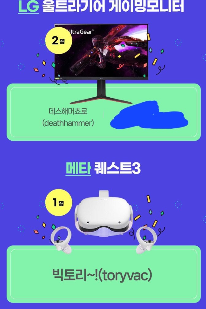 아래는 이벤트 당첨자 명단과 상품 링크입니다!