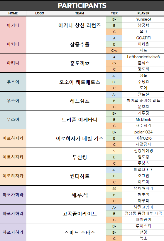- 홈 팀은 고수, 중수, 초보 중 어떤 카테고리의 경기를 먼저 진행할 지 정할 수 있습니다.