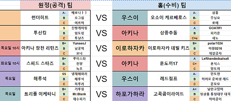 이번주 고갯길 배틀 원정팀 발표
