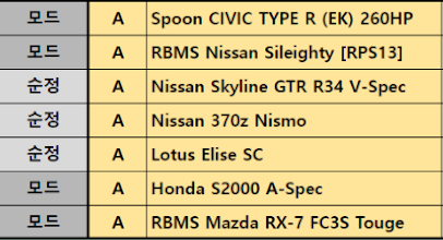 (앞으로 패치되어 들어오는 차는 우왁굳이 직접 밸런스 검수 후 추가 할 예정입니다)