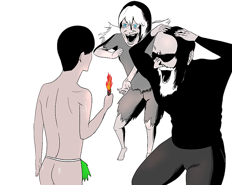 불을 처음 본 원시인 둘