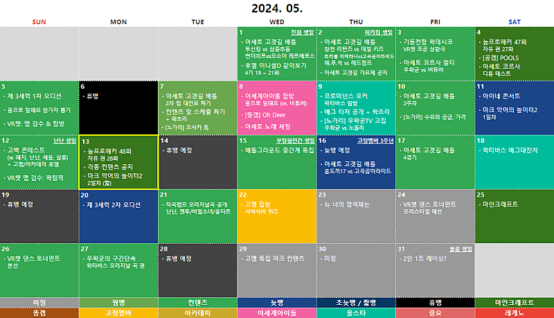 본 일기장은 단순 참고용이며, 추후 진행하는 방송 일정과 다소 차이가 있을 수 있습니다.