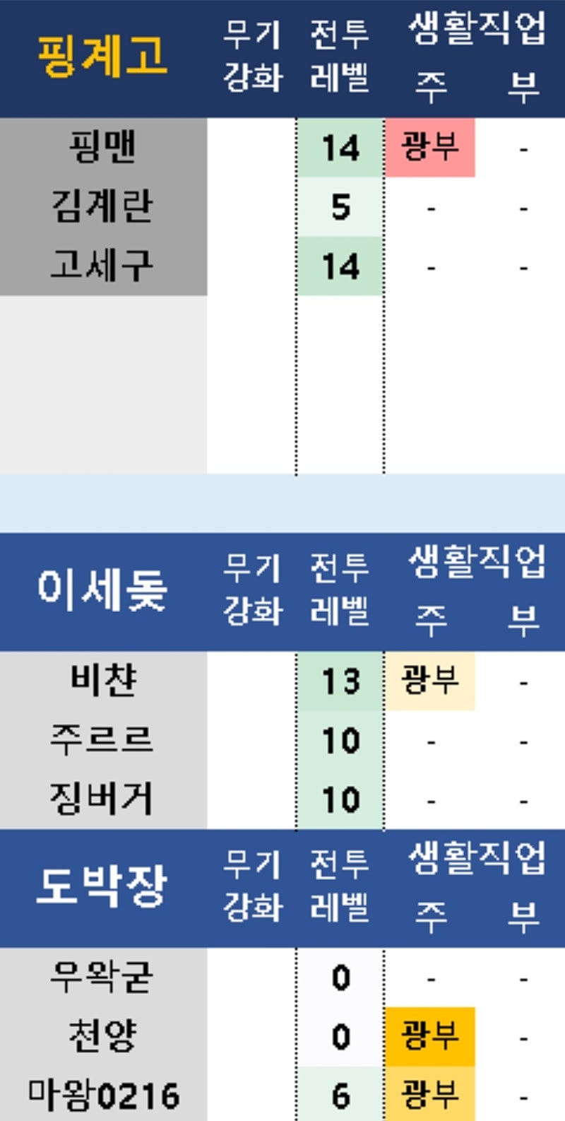 전투렙은 오늘이라 적용안된거같아용