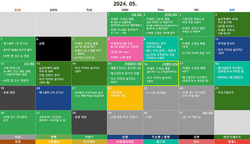 본 일기장은 단순 참고용이며, 추후 진행하는 방송 일정과 다소 차이가 있을 수 있습니다.