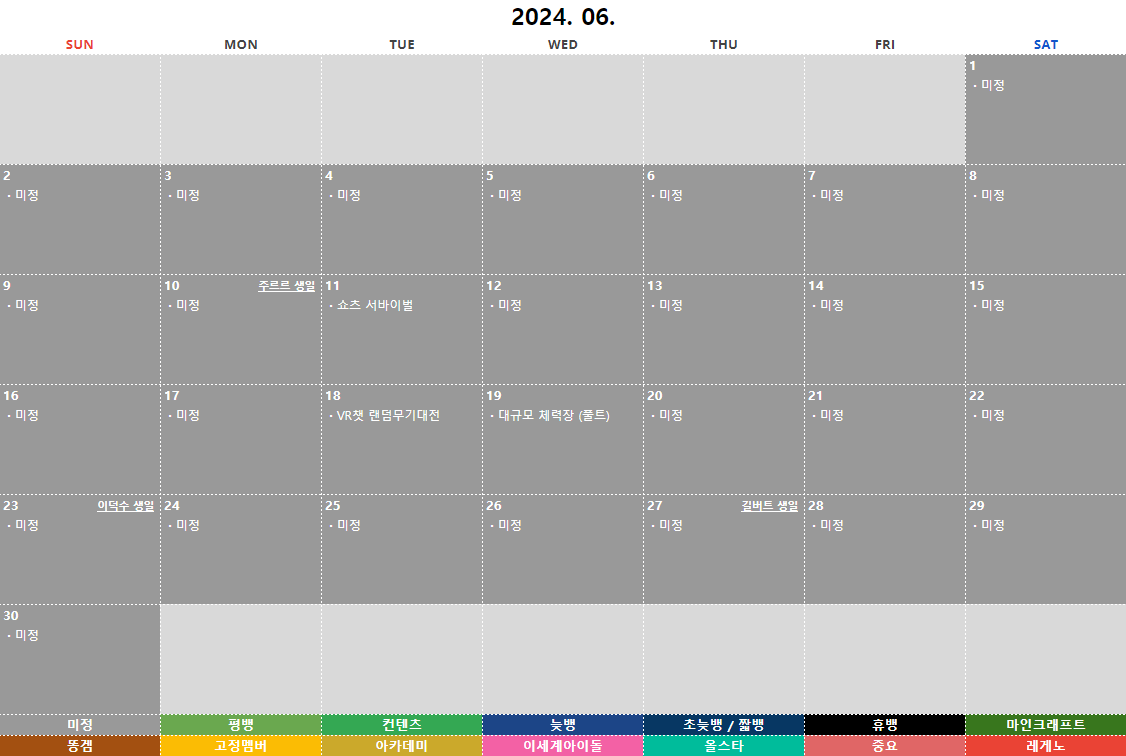 본 일기장은 단순 참고용이며, 추후 진행하는 방송 일정과 다소 차이가 있을 수 있습니다.