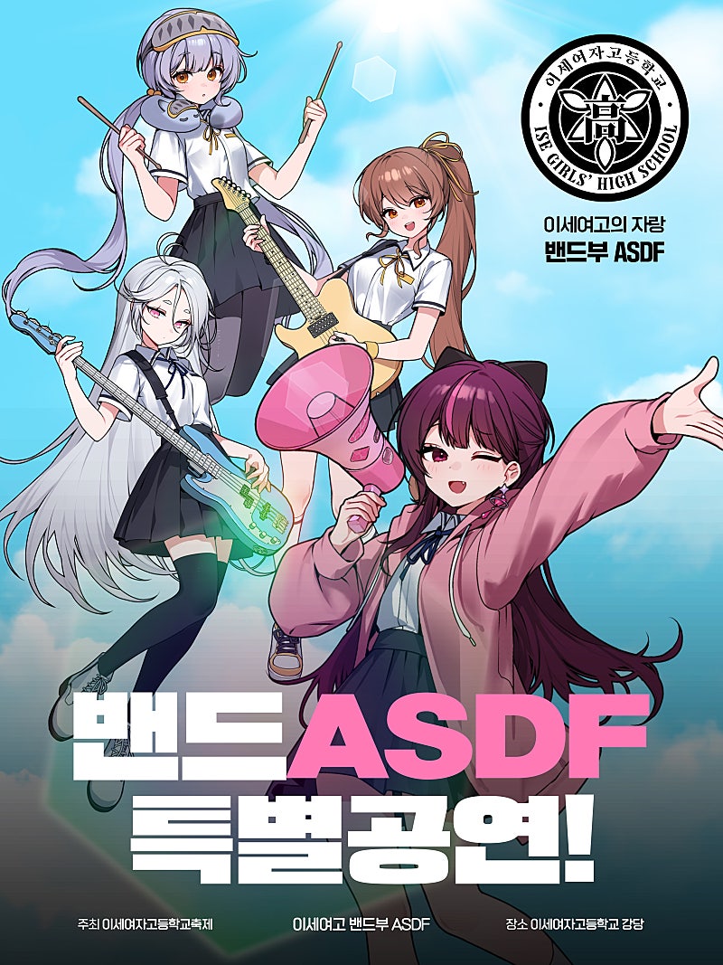 이세여고 축제에서 진행되는 밴드부 ASDF의 특별 공연 포스터입니다.