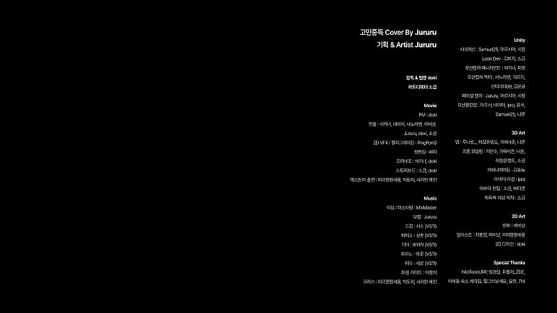 약 한 달 동안의 '고민중독' M/V 제작 프로젝트와 함께해 주신 이세계 아이돌 주르르님, 그리고 모든 팀원 분들께 진심으로 감사 드립니다.