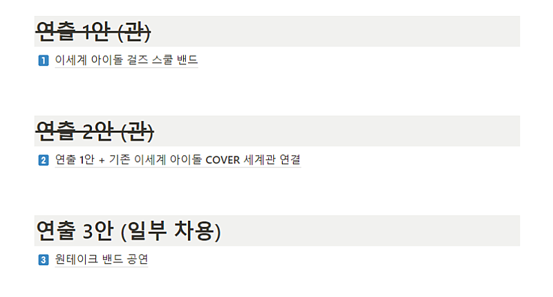 * 초기 기획 2안 : 기존의 이세계 아이돌 멤버 분들의 M/V 세계관과 접목한 청춘물