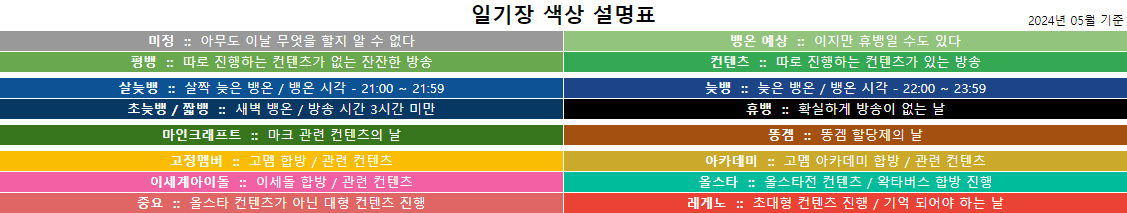 본 일기장은 단순 참고용이며, 추후 진행하는 방송 일정과 다소 차이가 있을 수 있습니다.