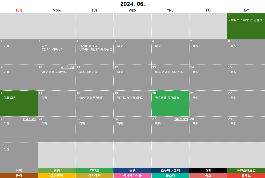 오늘의 방송은? 2024년 06월 01일 금요일 :: [뱅온 예정] 마크 왁피스 스타팅 맵 만들기 | |||
