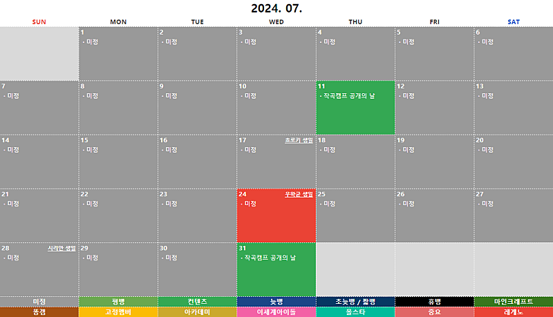 아래에 작성된 계획표는 변경될 가능성이 아주 높습니다.