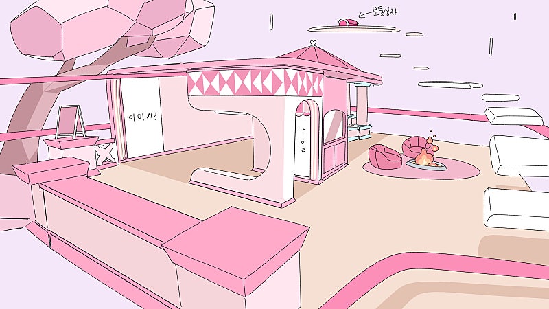 전체적인 컬러감과 분위기는 마이멜로디 팝업스토어를,