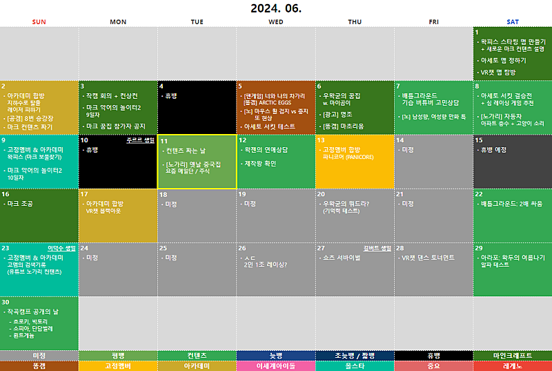 아래에 작성된 계획표는 변경될 가능성이 아주 높습니다.