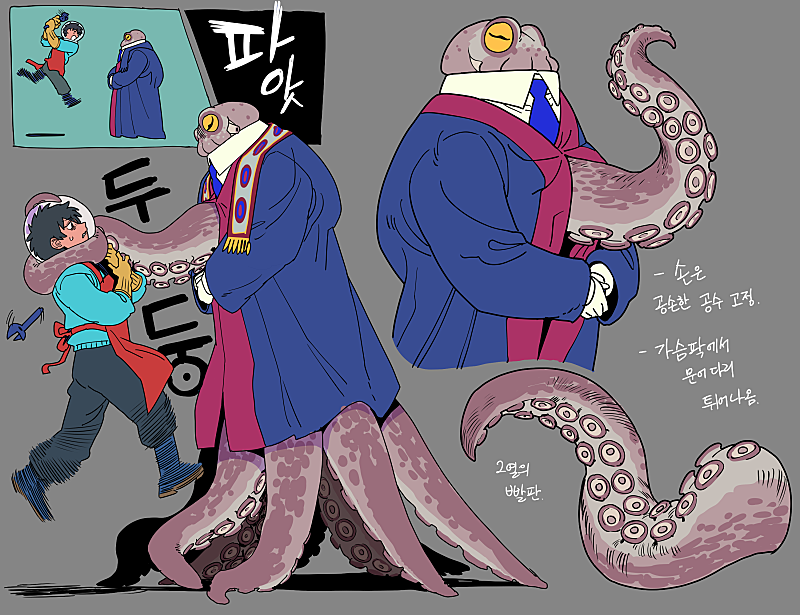 빌런 측 해양생물 3인방의 디자인을 담당한 참빼미 입니다...!