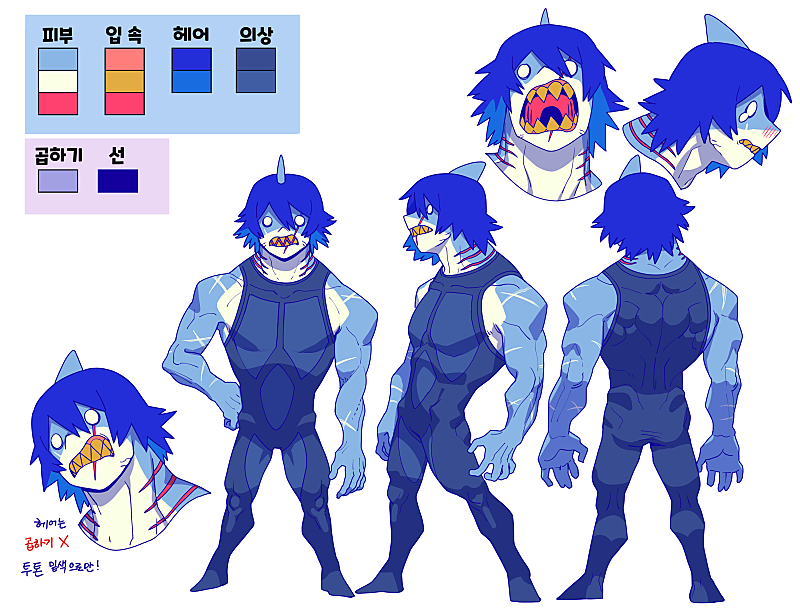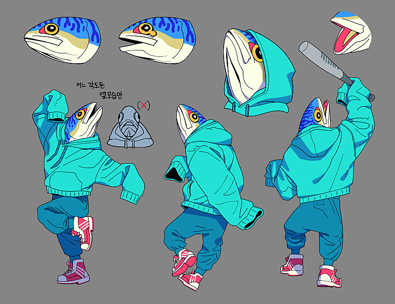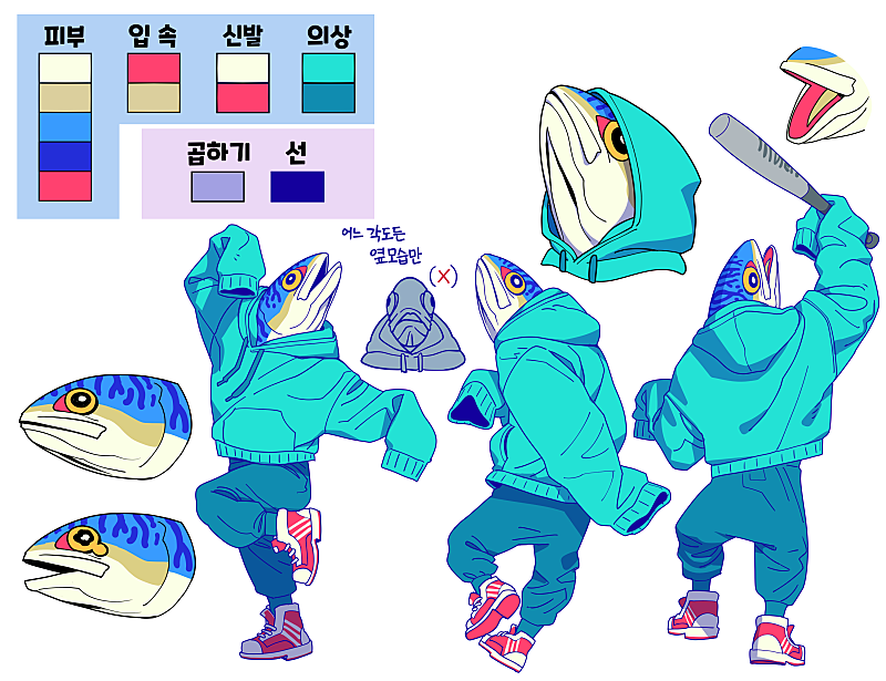 그렇게 셋의 특징이 정해지고, 저는 바다에 사는 다양한 어류를 그려보고 싶어서