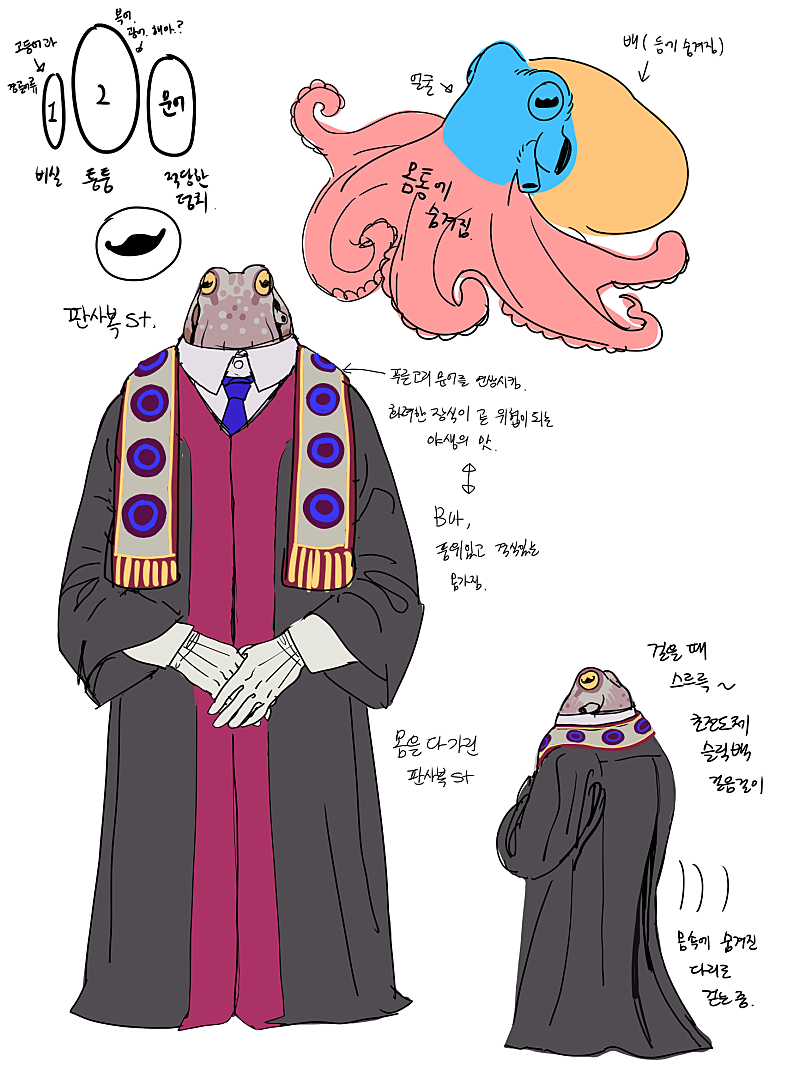 점잖은 법복을 입어서 그 안에 수많은 다리들을 숨기고 있다는 컨셉입니다!