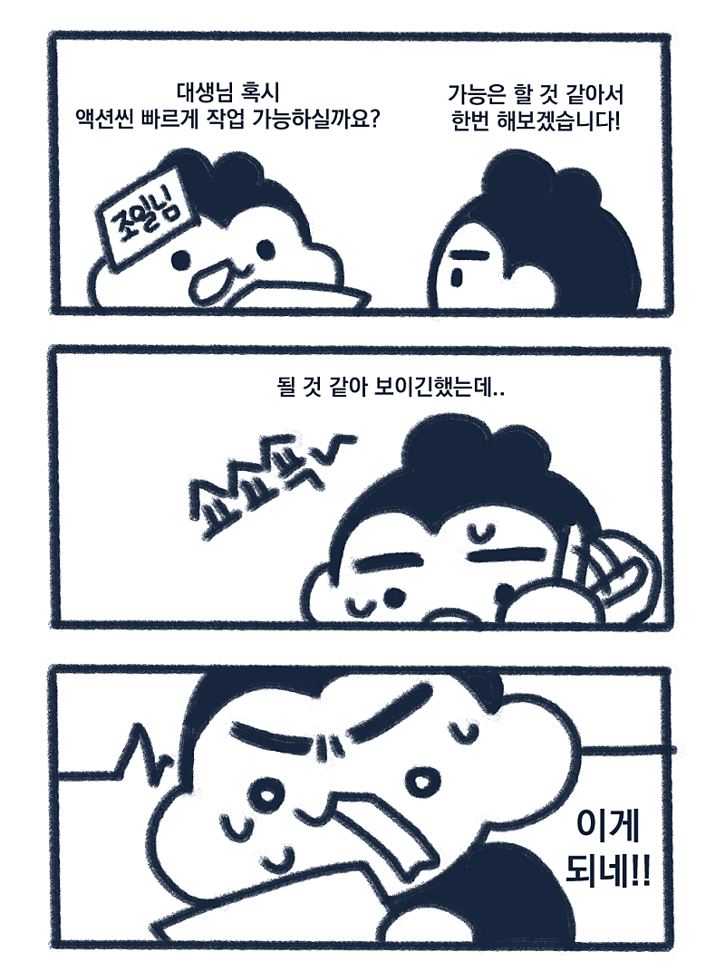 저런 상황이다보니 동화감독님께서 작업 배분해주실때마다 깨부를 시도했었어야 했는데