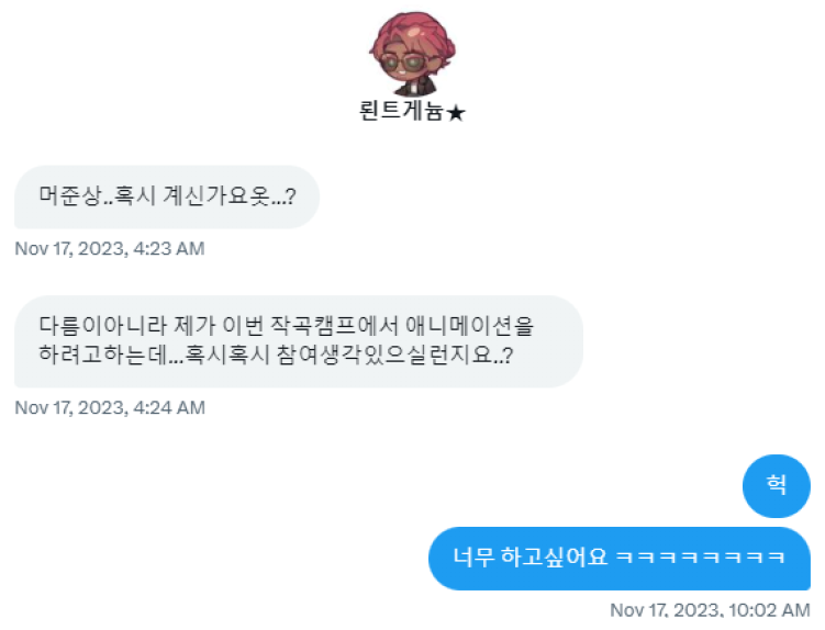 자고 일어나니까 뢴트님께 인스타랑 X에 연락이 와있었습니다