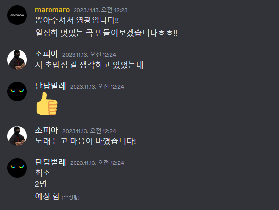 무려 소피아님과 단답벌레님께서 처음에 이 곡을 선택해 주셨을 때 너무 감사드렸습니다..