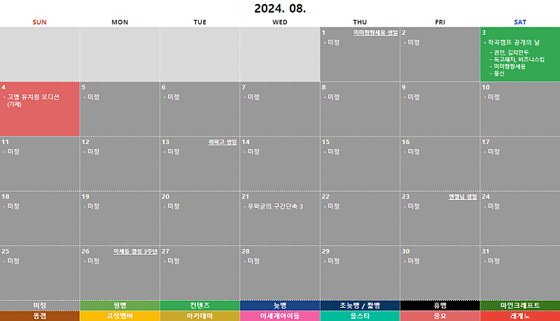 아래에 작성된 계획표는 변경될 가능성이 아주 높습니다.
