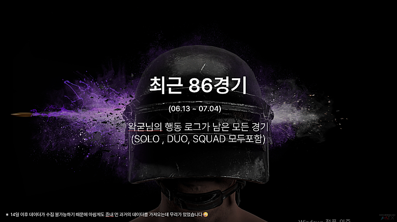 만드는 도중에도 계속 배그경기가 쌓였었는데 추가못한게 아쉽네요..